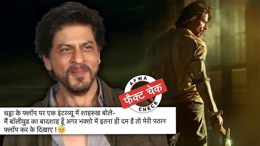 આજતકના એક અહેવાલાં કહેવામાં આવ્યું છે કે અમને જાણવા મળ્યું છે કે અભિનેતા શાહરૂખ ખાને ફિલ્મ પઠાણને લઈને આવું કોઈ નિવેદન આપ્યું નથી.