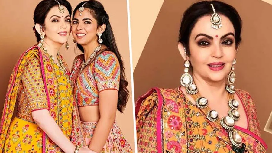 ફેશન ડિઝાઈનર અબૂ જાની અને સંદીપ ખોસલા દ્વારા ડિઝાઈન કરવામાં આવેલી મલ્ટીકલર હેરિટેજ ગુજરાતી કલેક્શનને નીતા અંબાણીએ પોતાની દીકરી ઈશાના પ્રી-વેડિંગ ફંક્શનમાં પહેરી હતી. આ સાડી મલ્ટીકલર થ્રેડથી તૈયાર કરવામાં આવી હતી. આ હેરિટેજ ગુજરાતી કલેક્શનની કિંમત 2-3 લાખ રૂપિયા છે.