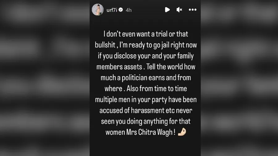 ઇન્સ્ટાગ્રામ પણ તેણે ઘણી બધી સ્ટોરી શેર કરી છે. તેની સાથે જ ચિત્રા વાઘને ઘણું બધુ સંભળાવી દીધું છે. તેણે લખ્યું કે, હું કોઇ ટ્રાયલ અને બીજી બકવાસમાં નહીં પડું. હું અત્યારે જેલમાં જવા તૈયાર છું, જો તમે પોતાની અને પોતાના પરિવારના સભ્યોની સંપત્તિનો ખુલાસો કરો છો. દુનિયાને બતાવો કે એક નેતા કેટલી કમાણી કરે છે અને ક્યાંથી કમાણી થાય છે. અને એ પણ કહી દઉં કે સમય-સમય પર પોતાની પાર્ટીના ઘણા પુરુષોના શોષણના આરોપ લાગ્યા છે, ત્યારે મેં ચિત્રા વાઘ તમને એ સ્ત્રીઓ માટે એમ કરતા જોયા નથી.