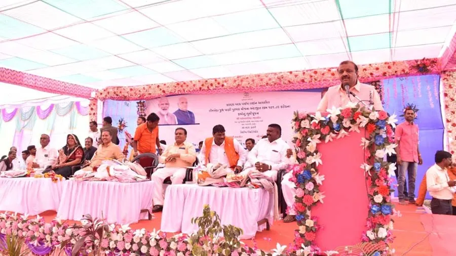 શૈલેષ ભટ્ટ, 63, દાહોદ જિલ્લાના સિંગવડ તાલુકાના કરમડી ગામમાં ગુજરાત પાણી પુરવઠા અને ગટર વ્યવસ્થા બોર્ડ (GWSSB) પ્રોજેક્ટના શિલાન્યાસ સમારોહમાં હાજરી આપી હતી. દાહોદ જિલ્લા માહિતી વિભાગ દ્વારા જાહેર કરાયેલા કાર્યક્રમની તસ્વીરોમાં જશવંતસિંહ ભાભોર અને સીંગવડ તાલુકા પંચાયતના પ્રમુખ કાંતા ડામોર વચ્ચે શૈલેષ ભટ્ટ આગળની હરોળમાં બેઠા છે. સ્ટેજની પૃષ્ઠભૂમિમાં PM નરેન્દ્ર મોદી, CM ભૂપેન્દ્ર પટેલ, પાણી પુરવઠા મંત્રી કુંવરજી બાવળિયા અને જસવંતસિંહ ભાભોરના પોસ્ટરો પ્રદર્શિત કરવામાં આવ્યા છે.
