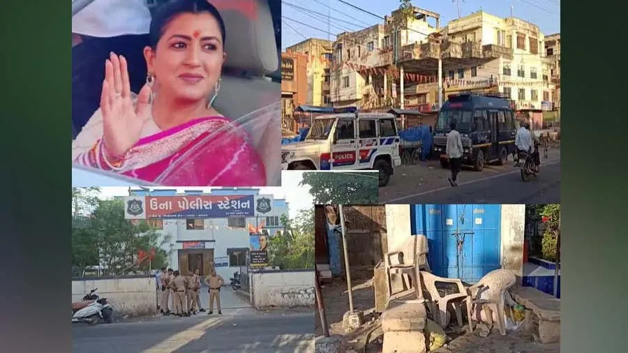 ગુજરાતના વડોદરામાં રામનવમીની શોભાયાત્રા દરમિયાન પત્થરબાજીના પ્રકરણ પછી હવે ગીર સોમનાથના ઉનામાં પણ સ્શિતિ તનાવપૂર્ણ બની છે. એવો આરોપ છે કે રામનવમીના એક કાર્યક્રમમાં એક ખાસ સમાજને ટાર્ગેટ કરીને નફરત ફેલાવવા માટે તેજાબી ભાષણ કરવામાં આવ્યું હતું. એ પછી સાંપ્રદાયિક તનાવ ફેલાયો છે. પોલીસના ઉચ્ચ અધિકારીઓનો કાફલો ઘટના સ્થળે ખડકી દેવામાં આવ્યો છે અને SRPની ટીમ તૈનાત કરી દેવામાં આવી છે. પોલીસની ટીમો સતત સોશિયલ મીડિયા પર પણ નજર રાખી રહી છે. એક ખાસ સમાજના લોકોની માંગ છે કે વિશ્વ હિંદુ પરિષદના સંમેલનમાં હાજર રહેલા કાજલ હિંદુસ્તાની સામે કાર્યવાહી કરવામાં આવે. કાજલ પર આરોપ છે કે તેણીએ એક સમાજ પર નિશાન સાધીને ભડકાઉ ભાષણ આપ્યું હતું જેને કારણે ઉનામાં સ્થિતિ બગડી છે.