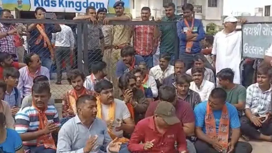 મહેસાણાની એક ખાનગી શાળામાં બકરી ઇદની ઉજવણીને લઈને હોબાળો થયો હતો. આરોપ છે કે બકરી ઇદના અવસર પર શાળામાં ઉજવણી કરવામાં આવી હતી, જે દરમિયાન હિંદુ બાળકોને નમાજ અધા. આ વાતની જાણ બાળકોના વાલીઓને થતાં તેઓએ હોબાળો મચાવ્યો હતો. એટલું જ નહીં આ ઘટનાને લઈને હિંદુ સંગઠનો પણ ઉશ્કેરાયા હતા. હિંદુ સંગઠનોના કાર્યકર્તાઓએ પણ શાળાની બહાર વિરોધ પ્રદર્શન કર્યું હતું.