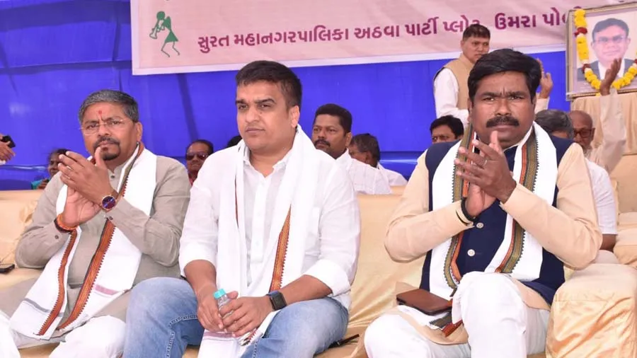સુરતના ઉમરા પોલીસ સ્ટેશનની બાજુમાં, અઠવા પાર્ટી પ્લોટ ખાતે ધોડિયા સમાજનો 25મો ભવ્ય સમૂહલગ્ન સમારોહ યોજાયો હતો. જેમાં ગૃહ રાજ્યમંત્રી હર્ષ સંઘવીએ ઉપસ્થિત રહી પ્રભુતામાં પગલા પાડી રહેલા 26 નવદંપતિઓને આશીર્વચન પાઠવ્યા હતા અને સમાજલક્ષી પ્રગતિશીલ કામગીરીને બિરદાવી રૂ.1 લાખનું દાન આપવાની જાહેરાત કરી હતી. સાથોસાથ ધારાસભ્ય મોહન ઢોડીયાએ રૂ.51 હજાર અને પૂર્વ આદિજાતિ વિકાસમંત્રી નરેશ પટેલ દ્વારા રૂ.21 હજારનું દાન આપવાની જાહેરાત કરવામાં આવી હતી.