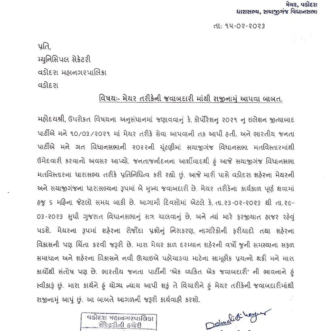 વડોદરાના મેયર પદેથી કેયુર રોકડીયાનું રાજીનામું