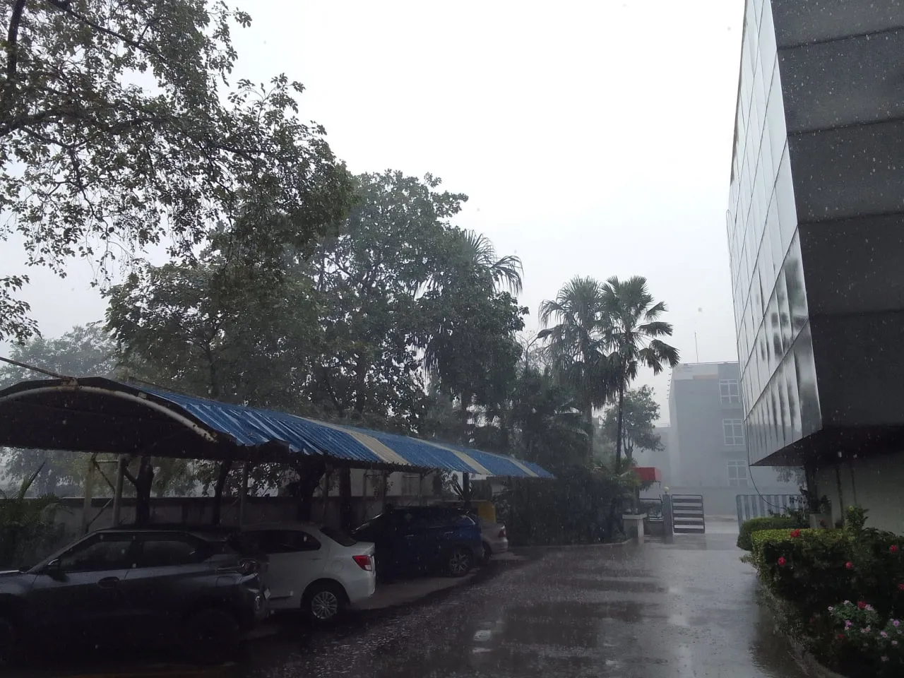 આજે સવારના સમયે ઇસનપુર વિસ્તારમાં આદિવાસી ભીલ સમાજના સમૂહગાનમાં વરસાદ પડ્યો હતો. અહીં સમુહલગ્ન ચાલુ હોવાને કારણે વરસાદને લીધે લોકોમાં પણ નાસભાગ મચી જવા પામી હતી. લોકો થાળીઓ લઈને નાસભાગ કરતા જોવા મળ્યા હતા. અચાનક પડેલા વરસાદને કારણે લોકોનું જીવન પ્રભાવિત થયું હતું.