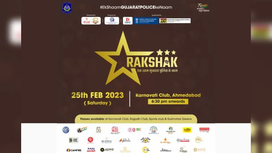 25 ફેબ્રુઆરી 2023ના રોજ “રક્ષક” એક શામ ગુજરાત પોલીસ કે નામ કાર્યક્રમ કર્ણાવતી ક્લબ ખાતે સાંજે 6:30 વાગે યોજાવાનો છે. ગુજરાતમાં સૌ પ્રથમ વખત પોલીસ માટેનો આ કાર્યક્રમ યોજાવા જઈ રહ્યો છે. જેમાં ગુજરાત પોલીસનું મનોબળ વધારવા માટે હિમાચલ પ્રદેશ પોલીસનું પ્રખ્યાત બેન્ડ “હાર્મની ઓફ ધ પાઈન્સ” પરફોર્મ કરવા માટે આવી રહ્યું છે. આપણા રક્ષક ગુજરાત પોલીસ જે રીતે કોઈ પણ સ્વાર્થ વગર લોકોની સેવા કરે છે એમના માટે આ કાર્યક્રમમાં ગુજરાતી ફિલ્મ ઈન્ડસ્ટ્રી અને બોલિવૂડના ઘણા જાણીતા કલાકારો ગુજરાત પોલીસને સેલ્યુટ કરવા માટે આવી રહ્યા છે.