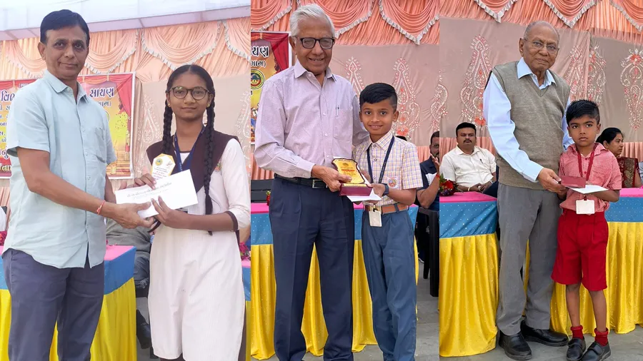 - બાલમંદિર વિભાગથી ધોરણ 12 સુધીના વિદ્યાર્થીઓને પારિતોષિક અર્પણ