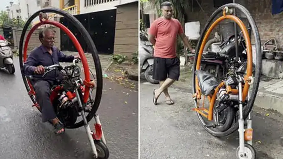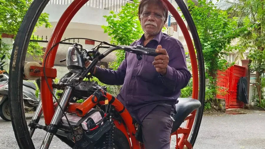 Natubhai, a seven class pass engineer from Surat, built an electric ring bike living in Majura area of Surat