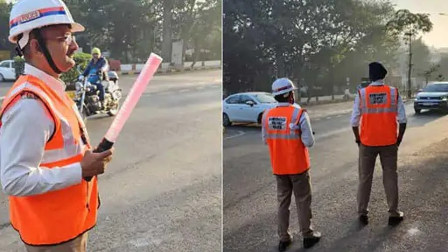 -ટ્રાફિક કર્મચારીએ લાઇટ બેટન અને બોડી રિફ્લેક્ટર ફરજિયાત પહેરવા પડશે.