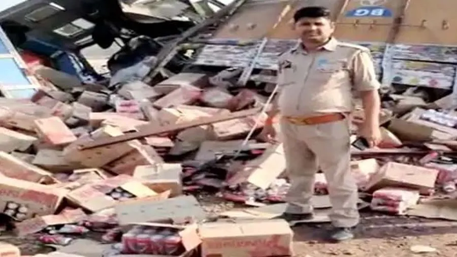 રસ્તા વચ્ચે પલટી ગયો બીયર ભરેલો ટ્રક, લોકો એટલા ભેગા થઇ ગયા કે હાઇવે જામ