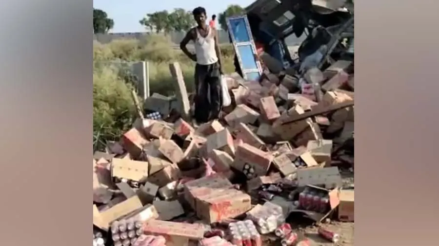 દારૂના શોખીનોને ફ્રીનો દારૂ મળવાથી મોટી ગિફ્ટ બીજી શું હોય શકે છે. એવું જ થયું આંધ્ર પ્રદેશમાં. બીયર ભરેલો એક ટ્રક પલટી ગયો. મંગળવારે આંધ્ર પ્રદેશના અનકાપલ્લી જિલ્લમાં બીયર ભરેલા લગભગ 200 બોક્સ લઈ જઈ રહેલો ટ્રક પલટી ગયો. ઘટના બાદ લોકો દુર્ઘટના સ્થળ તરફ દોડ્યા અને રોડ પર પડેલી બીયરની બોટલો ઉઠાવીને લઈ જતા નજરે પડ્યા. સમાચાર એજન્સી PTI દ્વારા પોસ્ટ કરવામાં આવેલો એક વીડિયોમાં લોકો બીયરની ઘણી બોટલો ઉઠાવતા અને ફટાફટ ભાગતા જોઈ શકાય છે.