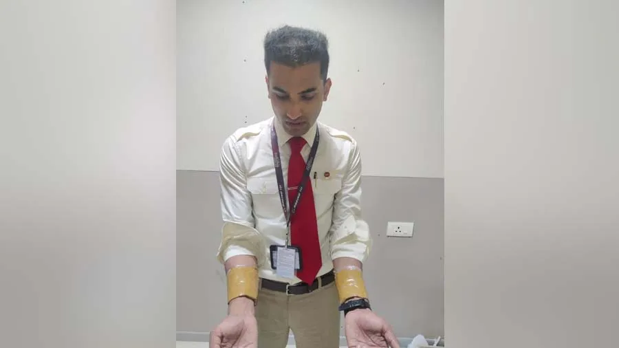 કસ્ટમ વિભાગના અધિકારીઓને એ સૂચના મળી હતી કે, બહરીન-કોઝિકોડ-કોચિની ફ્લાઇટનો એક કેબિન ક્રૂ શફી શરાફ સોનું લઈને આવી રહ્યો છે. આરોપીએ પોતાના હાથોમાં સોનું લપેટીને તેની ઉપર શર્ટની બાંય ઢાંકીને ગ્રીન ચેનલમાંથી પસાર થવાની યોજના બનાવી હતી. જોકે, તે તેમા સફળ ના થઈ શક્યો. અધિકારીઓએ જાણકારીમાં કહ્યું છે કે, શફીની પૂછપરછ કરવામાં આવી રહી છે. ANI દ્વારા તસવીરો શેર કરવામાં આવી રહી છે, જેમા દેખાઈ રહ્યું છે કે શફીએ કઈ રીતે સોનાના લેપને પોતાના હાથ પર લપેટ્યું છે.