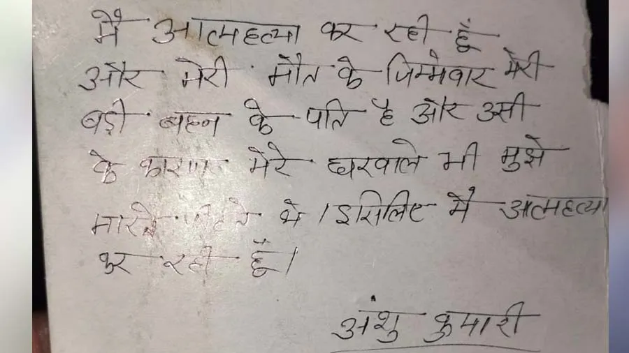 સાથે જ મૃતદેહને પોસ્ટમોર્ટમ કર્યા બાદ સ્વજનોને સોંપી દેવામાં આવ્યો છે. મૃતકે સુસાઈડ નોટમાં લખ્યું છે કે, તેના મૃત્યુ માટે તેની બહેનનો પતિ જવાબદાર છે, જેના કારણે તેના પરિવારના સભ્યો તેને માર મારતા હતા. એટલા માટે હું આત્મહત્યા કરી રહી છું.