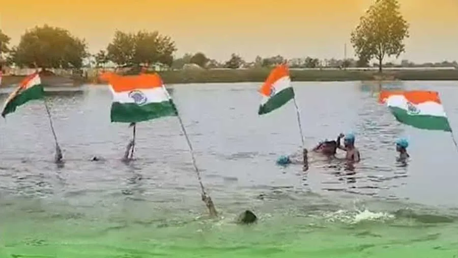 15મી ઓગસ્ટના રોજ મધ્ય પ્રદેશના દુર્ગ જિલ્લામાં રાષ્ટ્રીય સ્તરે તરવામાં મેડલ જીતનારા બાળકોએ નોખી રીતે ધ્વજને સલામી આપી અને આઝાદીની ઉજવણી કરી. દુર્ગ જિલ્લાના પૂરઈ ગામના બાળકોએ તળાવમાં ધ્વજ લહેરાવ્યો.