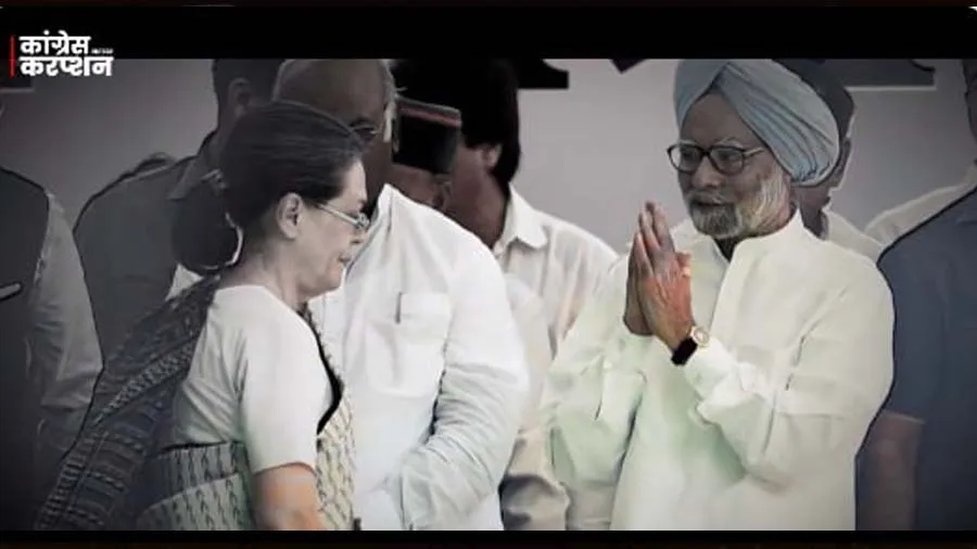 વીડિયોમાં ભાજપે આરોપ લગાવ્યો કે, કોંગ્રેસના શાસનકાળમાં 1.86 લાખ કરોડ રૂપિયાનો કોયલા કૌભાંડ, 1.76 લાખ કરોડ રૂપિયાનો 2G સ્પેક્ટ્રમ કૌભાંડ, 10 લાખ રૂપિયાનો મનરેગા કૌભાંડ, 70,000 કરોડ રૂપિયાનો કોમનવેલ્થ કૌભાંડ, ઇટાલીથી હેલિકોપ્ટર ડીલમાં 362 કરોડ રૂપિયાની લાંચ, રેલવે બોર્ડના ચેરમેન માટે 12 કરોડની લાંચની ઘટનાઓ થઈ.