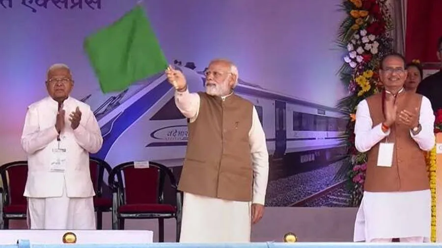 પ્રધાનમંત્રી મોદીએ  ટ્રેનને લીલીઝંડી બતાવતી વખતે કહ્યુ કે, આધુનિક ભારતમાં નવી વ્યવસ્થાઓ બની રહી છે, નવી પરંપરાઓ બની રહી છે. આજનો કાર્યક્રમ તેનું ઉત્તમ ઉદાહરણ છે. સાથે જ તેમણે કહ્યુ કે, આ આયોજન જે આધુનિક અને ભવ્ય રાની કમલાપતિ સ્ટેશન પર થઇ રહ્યું છે, તેના લોકાપર્ણ કરવાનું સૌભાગ્ય પણ તમે મને આપ્યું હતું. આજે મને અહીંથી જ દિલ્હી માટે ભારતની લેટેસ્ટ વંદે ભારત ટ્રેનને રવાના કરવાનો પણ અવસર આપ્યો છે. રેલવેના ઇતિહાસમાં ભાગ્યેજ એવું બન્યું હશે કે એક જ સ્ટેશન પર આટલા ટુંકા સમયગાળામાં કોઇ પ્રધાનમંત્રીએ બીજી વાર આવવાનું થયું હોય.