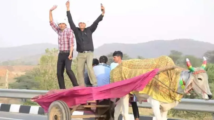 બળદગાડી પર વરરાજો, ઊંટ અને ઘોડાઓ પર જાનૈયા, બિઝનેસમેનના દીકરાની નીકળી અનોખી જાન