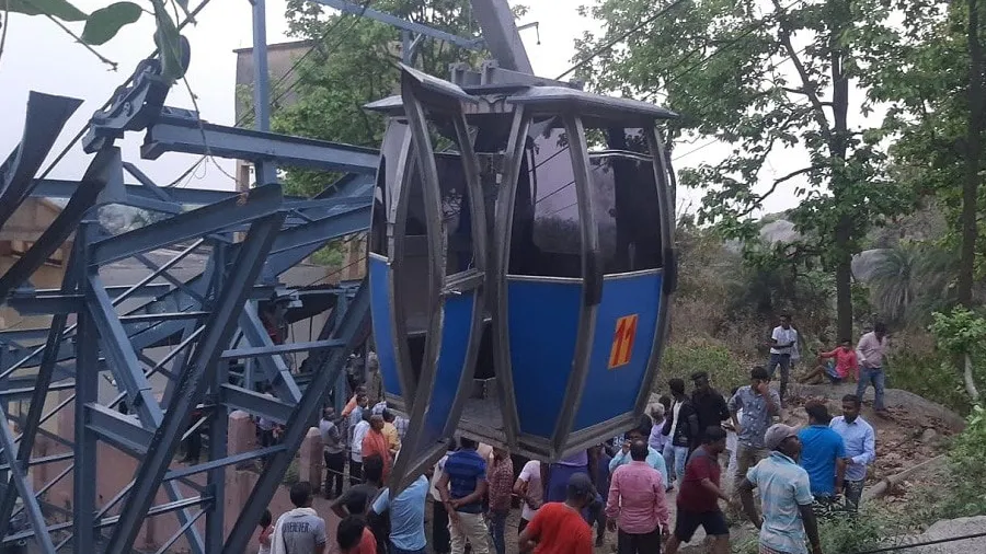Some cable cars on a ropeway collided with each other at Trikut Pahar close to Baba Baidyanath Temple in Deoghar, Jharkhand on 10 Apr.22 result 70 people trapped. Rescue operation is on by NDRF. It firms least priority for safety by operating agency. @JharkhandCMO ; @PMOIndia pic.twitter.com/lmUxhxk5wK