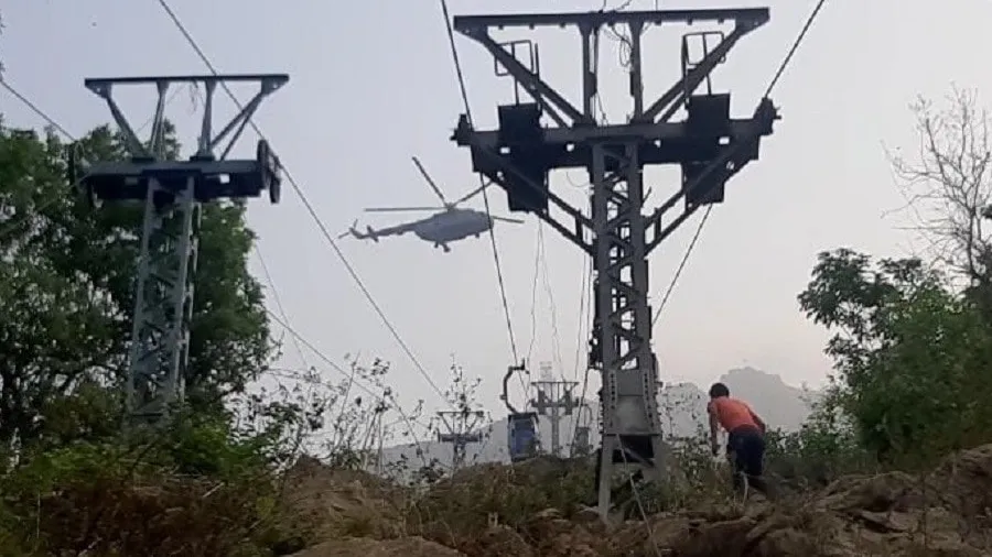 #WATCH | 8 people have been rescued so far in the rescue operation. 40 more persons are yet to be rescued from ropeway site near Trikut in Deoghar, Jharkhand pic.twitter.com/rLt7ys0iLB