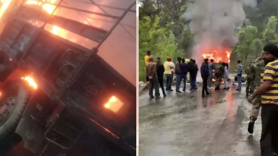 An Army truck carrying soldiers jawans caught fire in Poonch district of Jammu and Kashmir.