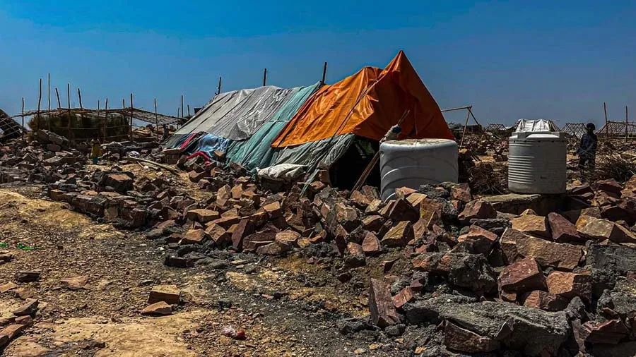 ત્યારથી, લગભગ 150 લોકો વળીયાઓને દાટીને ખુલ્લા આકાશ નીચે જીવી રહ્યા છે. ક્યાંય ઝાડ કે ઝાડી ઝાંખરા નથી. ઉડતા પક્ષીઓ શેકાઈ જાય છે એવી સળગાવી નાખતી ગરમી. ગરમ પવનમાં સળગતા કાળા પથ્થરો અને ફર્ર ફર્ર ઊડતી પોલિથીનની છત.