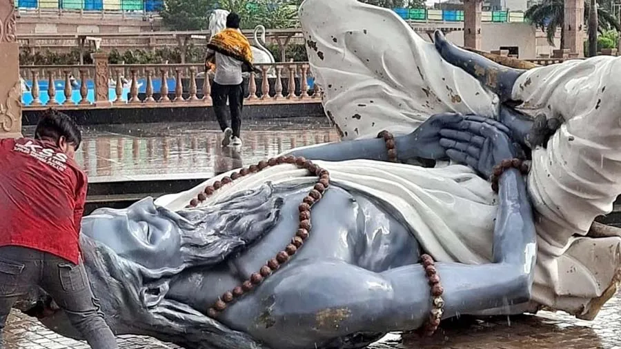 રવિવારના કારણે મોટી સંખ્યામાં ભક્તો મહાકાલ લોક પહોંચ્યા હતા. જો કે, રાહતની વાત એ છે કે આટલા નુકસાન બાદ પણ કોઈ ભક્તને ઈજા થઈ નથી.ખરેખર, 10 થી 25 ફૂટ ઉંચી આ મૂર્તિઓ લાલ પથ્થર અને ફાઈબર રિઈનફોર્સ પોલિમર્સ (FRP) ની બનેલી છે. ગુજરાતની એમપી બાબરિયા પેઢી સાથે સંકળાયેલા ગુજરાત, ઓડિશા અને રાજસ્થાનના કલાકારોએ આના પર કારીગરી કરી છે.