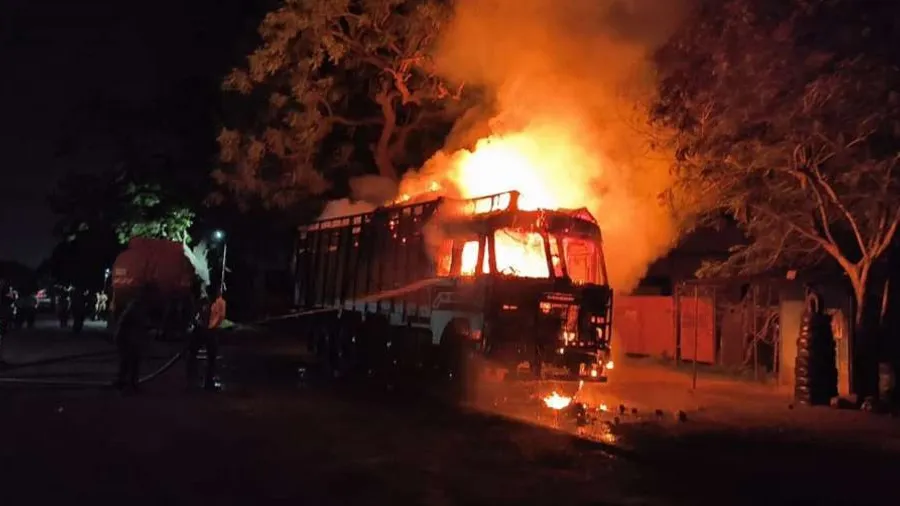 ગૌમાંસની શંકામાં ભીડે ડ્રાઇવરને ફટકારી ટ્રક ફૂંકી, પોલીસે કહ્યું- ગૌમાંસ નહોતું