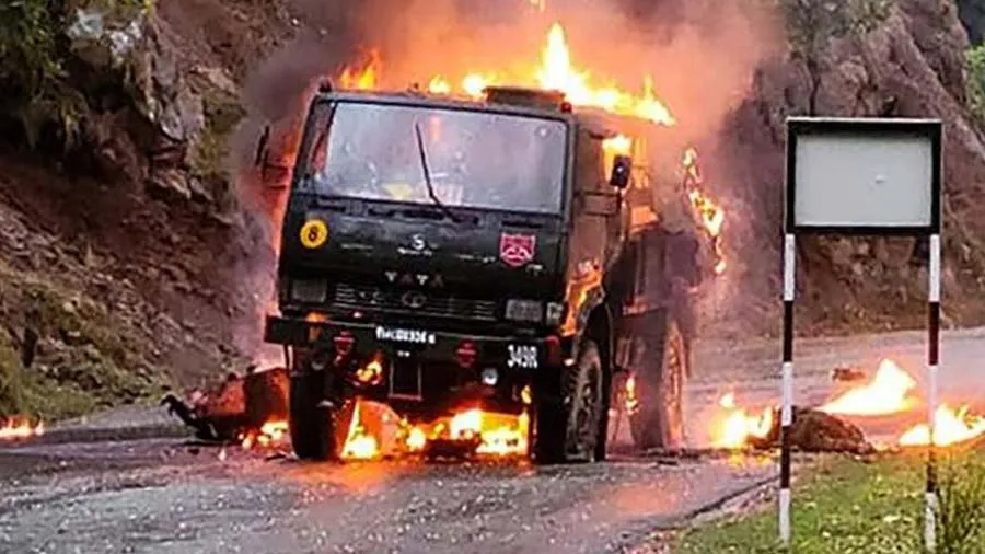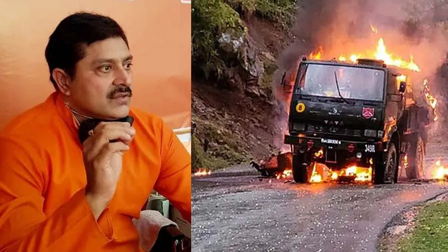 જમ્મૂ-કાશ્મીમાં LOCને અડીને આવેલા પુંછ જિલ્લાના ભિમ્બર ગલી વિસ્તારમાં ગુરુવાર 20 એપ્રિલે એક સૈન્ય વાહન પર આતંકવાદી હુમલો થયો હતો. આ હુમલામાં 5 ભારતીય જવાનો શહીદ થઇ ગયા હતા. આ હુમલાને લઇને શિવસેના ( ઉદ્ધવ ઠાકરે ગ્રુપ) ભડકી છે. જવાનો પરના આ હુમલાનો શિવસેનાની જમ્મૂ-કાશ્મીર યુનિટે જબરદસ્ત વિરોધ પ્રદર્શન કર્યું છે. પ્રદર્શનકારીઓએ પાકિસ્તાની ધ્વજ અને હુમલાની જવાબદારી લેનાર જૈશે-એ મોહમંદના PAFFના પુતળાં ફુંક્યા હતા.