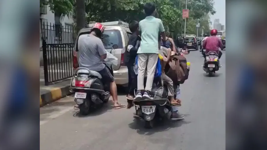 હકીકતમાં એક વ્યક્તિએ પોતાના સ્કૂટરની સીટ પર 7 સગીર બાળકોને બેસાડ્યા હતા અને પોતે ડ્રાઈવ કરી રહ્યો હતો. ઘટના સેન્ટ્રલ મુંબઈની છે. આ દરમિયાન સોહેલ કુરેશી નામના વ્યક્તિએ તેનો વીડિયો બનાવીને સોશિયલ મીડિયા પર નાખી દીધો. ત્યારબાદ પોલીસે આ ઘટનાને ધ્યાનમાં લીધી અને સ્કૂટર ચલાવનાર વ્યક્તિની ધરપકડ કરી લીધી. 20 જૂનના રોજ સોહેલ કુરેશી નામના ટ્વીટર યુઝરે આ વીડિયો પોસ્ટ કર્યો હતો અને કહ્યું કે, બેદરકાર પાગલ એક સ્કૂટર પર 7 બાળકો સાથે સવારી કરી રહ્યો છે. 7 નાના બાળકોના જીવ જોખમમાં નાખવા માટે તેની તાત્કાલિક ધરપકડ થવી જોઈએ. અહી સુધી કે આ બાળકોના માતા-પિતા પર પણ કેસ ચલાવવો જોઈએ.