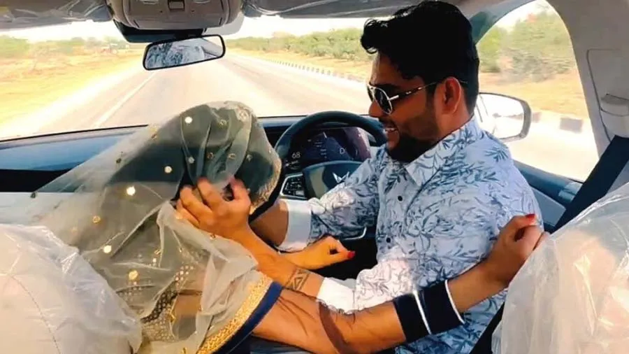 ન સ્ટિયરિંગ પર હાથ, ન બ્રેક પર પગ..પુરપાટ દોડતી XUVમાં કપલની મસ્તીથી લોકો ગુસ્સે