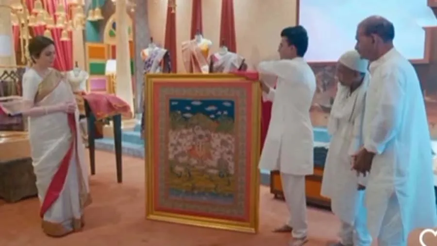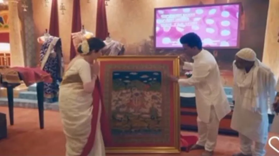 નીતા અંબાણીએ શ્રીનાથજીની પેઈન્ટિંગને સ્પર્શ કરતા પહેલા સેન્ડલ ઉતાર્યા