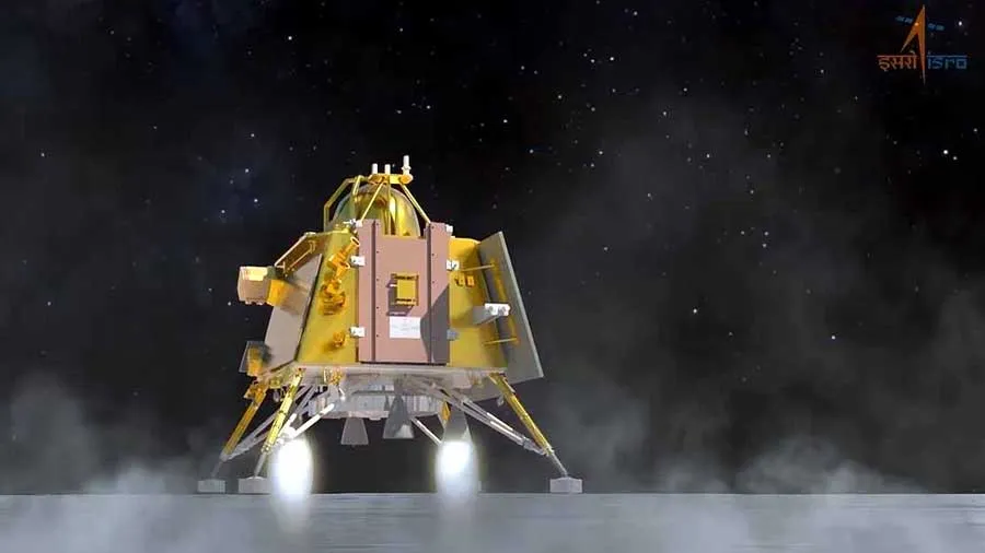 વિક્રમ લેન્ડરના પેટમાં જે પ્રજ્ઞાન રોવર રાખ્યું હતું તે 20 મિનિટ પછી બહાર આવ્યું હતું. વિક્રમ લેન્ડરનો આકાર 6.56 ફીટ x 6.56 ફીટ x 3.82 ફીટ છે. તેના 4 પગ છે અને તેનું વજન 1749.86 કિલોગ્રામ છે.