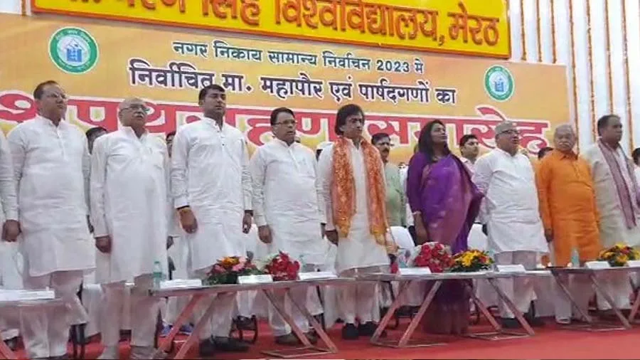 મેરઠની CCS યુનિવર્સિટીના સુભાષ ચંદ્ર બોઝ ઓડિટોરિયમમાં નવા ચૂંટાયેલા મેયર અને કોર્પોરેટરોનો શપથ ગ્રહણ સમારોહ ચાલી રહ્યો હતો. આ દરમિયાન BJPના કોર્પોરેટરોએ વંદે માતરમ ગાવાનું શરૂ કર્યું હતું. AIMIM કોર્પોરેટરોએ તેનો વિરોધ કર્યો અને બેસી રહ્યા. આ દરમિયાન BJP અને AIMIMના કોર્પોરેટરો વચ્ચે તુ-તુ-મેં-મેં થઈ હતી અને તે વાત મારામારી સુધી પણ પહોંચી ગઈ હતી.