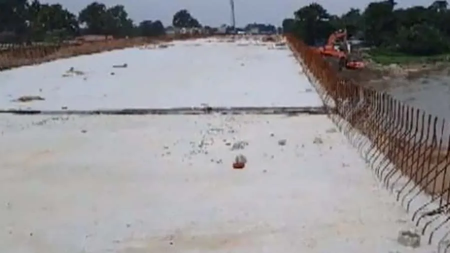 #WATCH | Pillar of an under-construction bridge on Mechi River which connects Katihar and Kishanganj districts in Bihar, caves in near Gori village on NH-327E. pic.twitter.com/VsYAP9xnl7