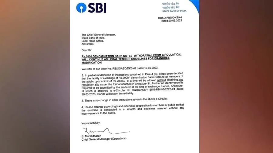 રિઝર્વ બેંક ઓફ ઈન્ડિયા (RBI)એ 2000 રૂપિયાની નોટોને ચલણથી બહાર કરવાનો નિર્ણય લીધો છે. જો તમે 2000 રૂપિયાની નોટને એક્સચેન્જ કરાવવા માટે 23 મેના રોજ બેંકમાં જવાના છો તો આ તમારા માટે જરૂરી સમાચાર છે. એવા સમાચાર મળી રહ્યા છે કે ID પ્રૂફ વિના જ 2000 રૂપિયાની નોટોને અન્ય કિંમતની નોટો સાથે એક્સચેન્જ કરાવી શકો છો. તેના માટે તમારે કોઈ ફોર્મ ભરવું નહીં પડે. દેશની સૌથી મોટી સરકારી બેંક, સ્ટેટ બેંક ઓફ ઈન્ડિયા (SBI)એ પોતાના લેટરમાં આ બાબતે જાણકારી આપી છે.