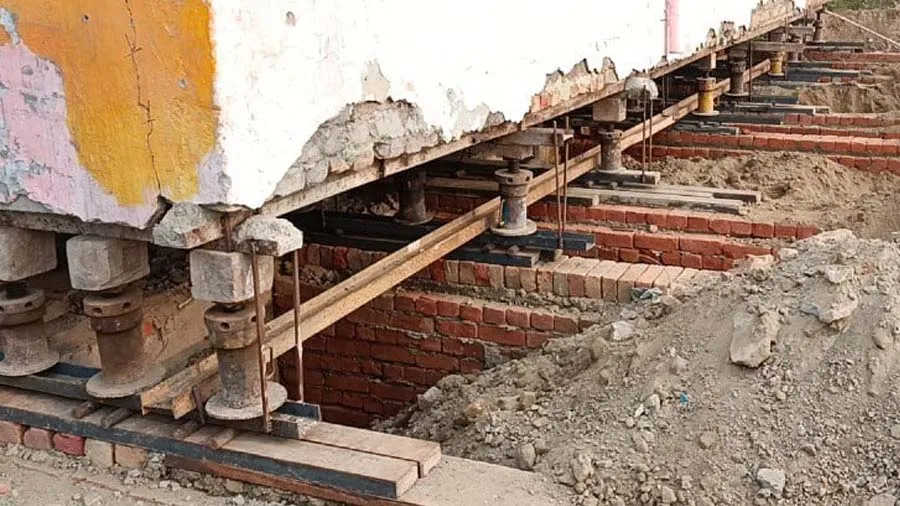 હાઇવે પર બનેલા 150 વર્ષ જૂના હનુમાન મંદિરને જેક લગાવીને કરાઇ રહ્યું છે શિફ્ટ
