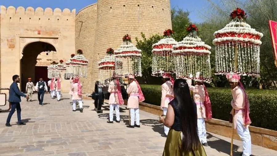 હોટેલમાં બપોરે 2 વાગ્યે પાઘડી બાંધવાનો કાર્યક્રમ શરૂ થયો હતો. અહીં વરરાજા સિદ્ધાર્થને પણ પાઘડી બાંધવામાં આવી હતી. બારાતીઓને પણ પાઘડીઓ બાંધવામાં આવી હતી અને લગભગ 4 વાગ્યે સિદ્ધાર્થની જાન નીકળી હતી, જેમાં સંપૂર્ણ રાજાશાહી વ્યવસ્થા કરવામાં આવી હતી. લાગણી જાનમાં વિન્ટેજ ગાડીઓ, ઊંટ અને ઘોડાઓનો કાફલો શરૂ થયો. સૂર્યગઢના પગથિયાં પર લગ્નનો મંડપ શણગારવામાં આવ્યો હતો. લગ્ન પંજાબી રીતિ-રિવાજ મુજબ થયા હતા. બંનેના લગ્ન માટે દરેક લોકો ખૂબ જ ઉત્સાહિત હતા.