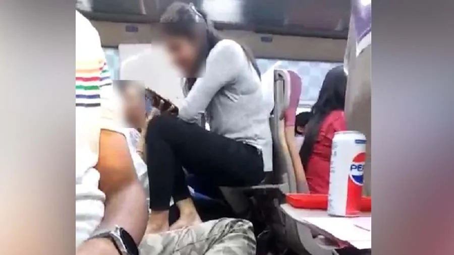 जो वीडियो सामने आया है, वो महज़ 3 सेकेंड का है। जिसमें एक युवती ट्रेन की सीट के पीछे खान-पान और लैपटॉप रखने के लिए लगाई गई सर्विंग ट्रे पर बैठी है। उसने अपने दोनों पैर सीट पर रखे हुए हैं।#ATDigital #VandeBharat #IndianRailways pic.twitter.com/kKjweUWQe2