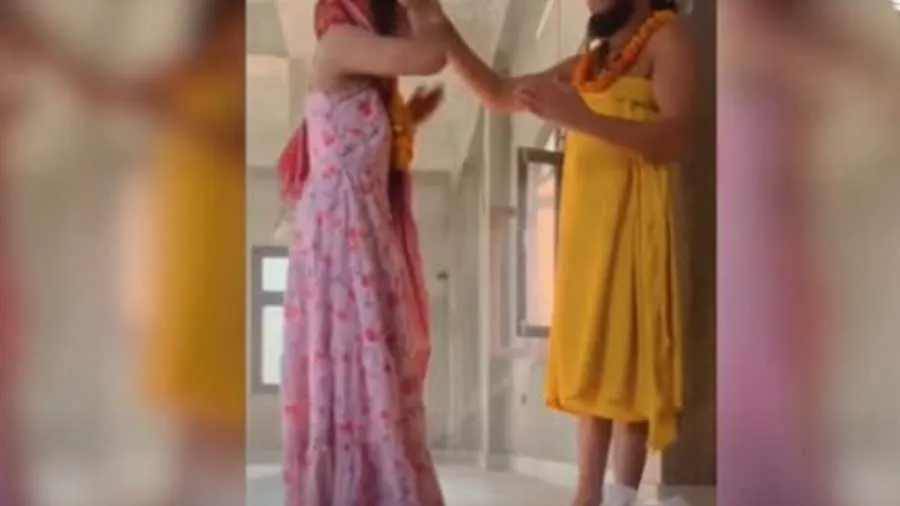 સોશિયલ મીડિયા પર વાયરલ થયેલા એક વીડિયોમાં પૂજારી પૂજાના વસ્ત્રોમાં દેખાઇ રહ્યો છે અને સાથે એક યુવતી નજરે પડી રહી છે. બંનેના ગળામાં ફુલોની માળા દેખાઇ રહી છે. મંદિરમાં જ યુવતી અને પૂજારી બંને 7 ફેરા ફરી રહ્યા છે. એ પછી પૂજારી યુવતીના માથે પર સિંદુર લગાવી રહ્યો છે.