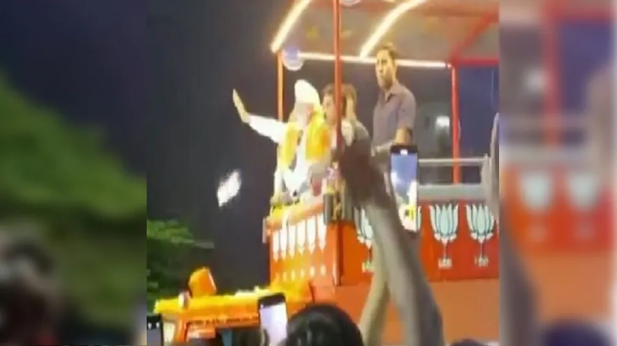 કર્ણાટકમાં વિધાનસભા ચૂંટણી પ્રચાર દરમિયાન PM નરેન્દ્ર મોદીની ગાડી પર મોબાઈલ ફોન ફેંકવામાં આવ્યો હતો. આ ઘટના ત્યારે બની જ્યારે તેઓ મૈસૂરમાં રોડ શો કરી રહ્યા હતા. જોકે PM નરેન્દ્ર મોદીને મોબાઈલ હાથ પર ન લાગ્યો અને તેઓ જે ગાડી પર સવાર હતા તેની આગળ પડી ગયો હતો. મોબાઈલ ફેંકાયા બાદ સ્પેશિયલ પ્રોટેક્શન ગ્રુપ (SPG)ના જવાનોએ તરત જ PM નરેન્દ્ર મોદીની ગાડી પરથી તે મોબાઈલને દૂર કરવામાં આવ્યો હતો. આ પછી તપાસ કરવામાં આવી અને મોબાઈલ એક મહિલાનો જ હોવાનું બહાર આવ્યું. આ મહિલાએ મોબાઈલ ફેંકવાનું કારણ પણ જણાવ્યું હતું.