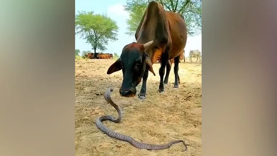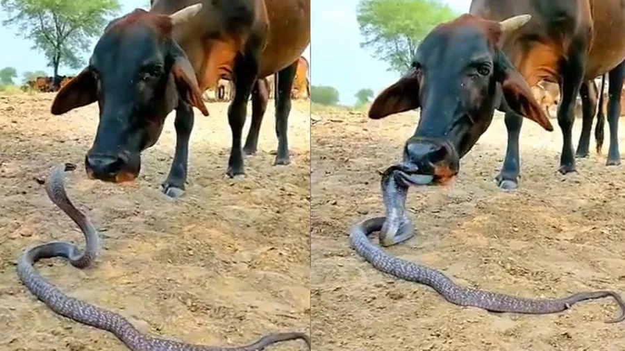 ખતરનાક સાપના ફેણને ચાટતી નજરે પડી ગાય, જુઓ વાયરલ વીડિયો