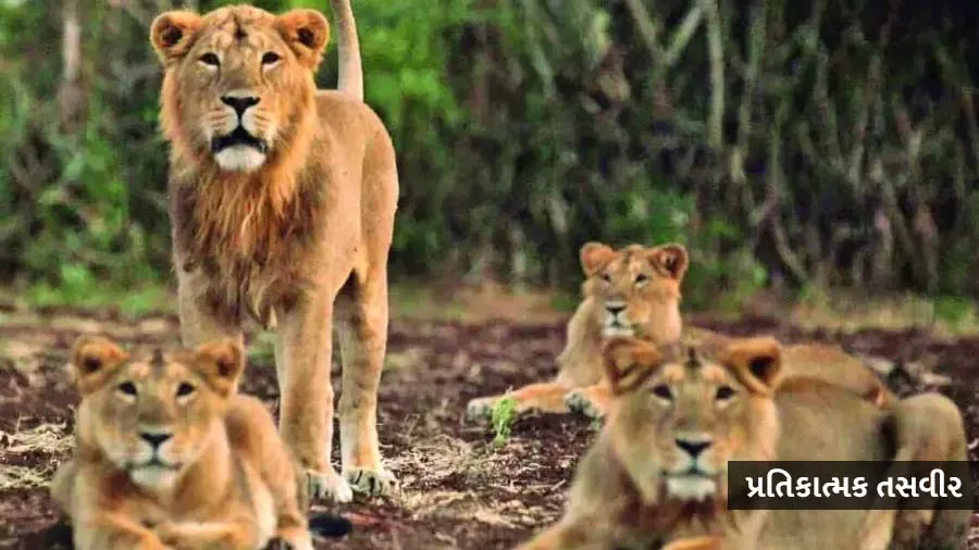 જંગલના રાજા ગુજરાતની શેરીમાં ટહેલવા નિકળ્યા, 8 સાવજના ટોળાથી ફફડાટ, જુઓ વીડિયો