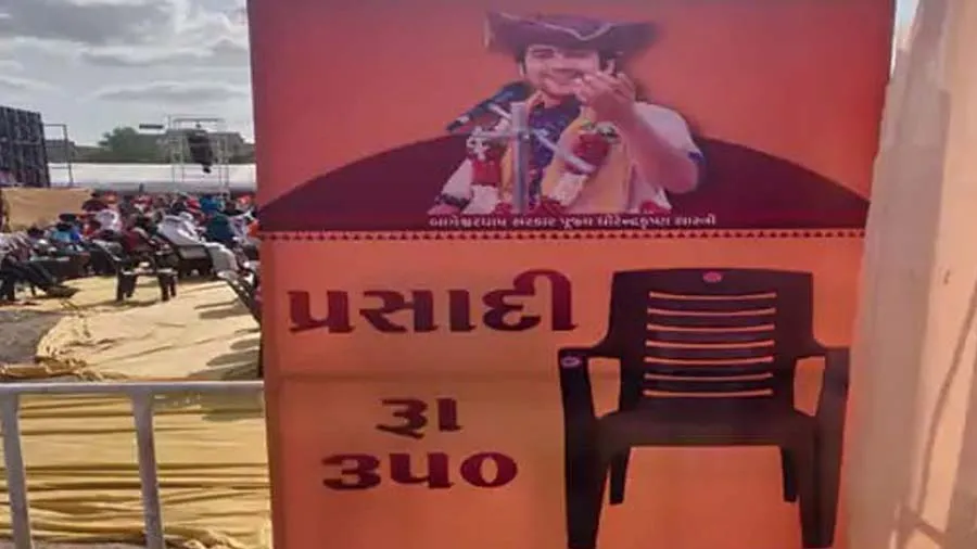બાગેશ્વર બાબાને પણ ટપી ગયો રાજકોટનો વેપારી, કથાસ્થળે પ્રસાદીના નામે ખુરશીઓ વેચી