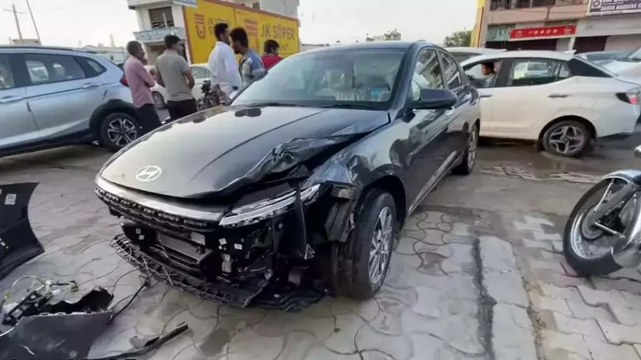 લોન્ચના દિવસે જ Hyundai Vernaનો થયો અકસ્માત! બાઇક સાથેની ટક્કરમાં ડેમેજ થઈ કાર!