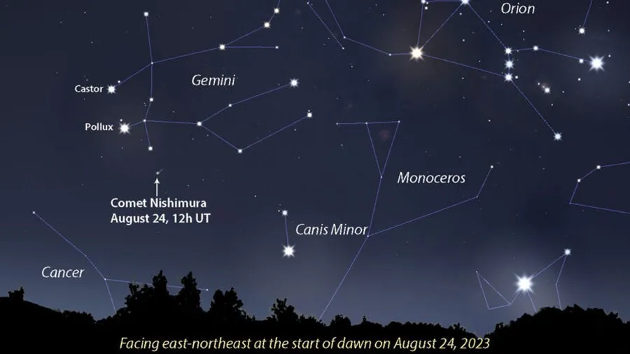 ધૂમકેતુ નિશિમુરા 17 સપ્ટેમ્બર સુધી સવારે સૂર્યોદય અગાઉ નજરે પડશે. ત્યારે તે સૂર્યની સૌથી નજીકથી પસાર થશે. જોવાનો સૌથી સારો સમય સવારનો છે, પરંતુ અઠવાડિયાના અંતમાં જેમ જેમ તે સૂર્યની નજીક આવશે, તેને જોવો મુશ્કેલ થઈ જશે. 15 સપ્ટેમ્બરના રોજ ધૂમકેતુ સૂર્યની નજીક આવશે અને બુધના ઓર્બિટમાં પ્રવેશ કરી જશે. 17 સપ્ટેમ્બરના રોજ ધૂમકેતુ પૃથ્વીથી આ ઓર્બિટમાં પહોંચી જશે, જ્યાંથી તે સૂર્યના સૌથી નજીક હશે. એ સમયે તેની ગતિ 2.9 હશે અને તેને નરી આંખે સરળતાથી જોઈ શકાય છે.