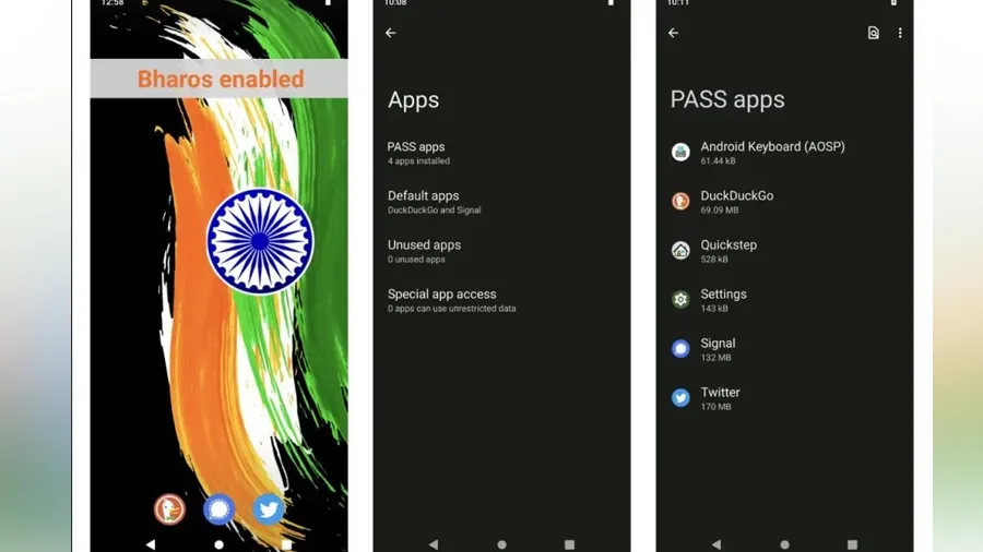 આ મોબાઇલ ઓપરેટિંગ સિસ્ટમની સારી વાત એ છે કે, આ નો ડિફોલ્ટ એપ્સની સાથે આવે છે. તેનો મતલબ છે કે, યુઝર્સને એન્ડ્રોઇડના વિપરિત અધિકાંશ સ્ટોરેજ સ્પેસ મળશે. OEM ડિફોલ્ટ ગૂગલ એપ્સની સાથે સાથે અમુક નેટવ એપ્સની સાથે ફોન શિપ કરે છે. ‘BharOS’ની સાથે, કોઇને એ એપ્સનો ઉપયોગ કરવા માટે મજબૂર ન કરવામાં આવશે. જેનાથી તે વિપરિત ન થઇ શકે તે કે જેના પર તે ભરોસો ન કરી શકે.