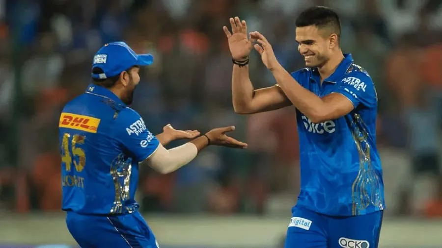 A special moment for young Arjun Tendulkar, who gets his first wicket in #TATAIPL and it is his captain Rohit Sharma, who takes the catch of Bhuvneshwar Kumar.
