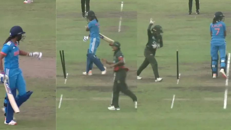 34મી ઓવરના ચોથા બોલ પર હરમનપ્રીતે નાહિદા અખ્તરની બોલ પર સ્વીપ શોટ રમવાનો પ્રયાસ કર્યો, પરંતુ તે ચૂકી ગઈ. આવી સ્થિતિમાં બાંગ્લાદેશી ખેલાડીઓએ તેની સામે LBW આઉટ માટે અપીલ કરી હતી, જેના પર અમ્પાયરે તેને મોડું કર્યા વિના આઉટ જાહેર કરી દીધી હતી.