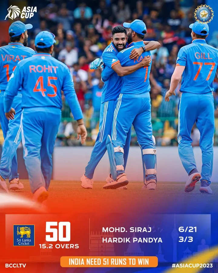 એશિયા કપની ફાઈનલમાં ભારતે કર્યું લંકાદહન, ઐતિહાસિક વિજય, સિરાજ હીરો