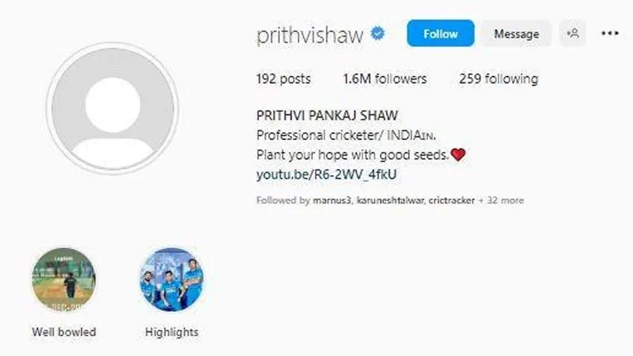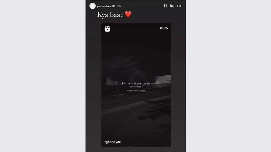 મંગળવારે સાંજે ટીમ ઈન્ડિયાની જાહેરાત કરવામાં આવી હતી, ત્યારબાદ પૃથ્વી શૉએ ઈન્સ્ટાગ્રામ પર કેટલીક વાતો શેર કરી હતી. આમાં પૃથ્વીએ એક કવિતા શેર કરી હતી, જેમાં કહેવામાં આવ્યું હતું કે 'કોઈને તે મફતમાં મળી ગઈ તે વ્યક્તિ, જે મને કોઈ પણ કિંમતે જોઈતી હતી.' પૃથ્વી શૉએ તેના ઈન્સ્ટાગ્રામ એકાઉન્ટ પરથી પ્રોફાઈલ ફોટો પણ હટાવી દીધો છે.